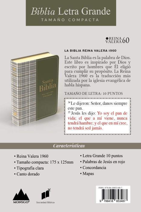 Biblia RVR60 Tamaño compacto Letra Grande 12 puntos