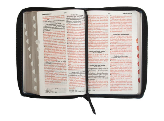 Biblia RVR60 Tamaño manual letra grande azul con cierre y indice
